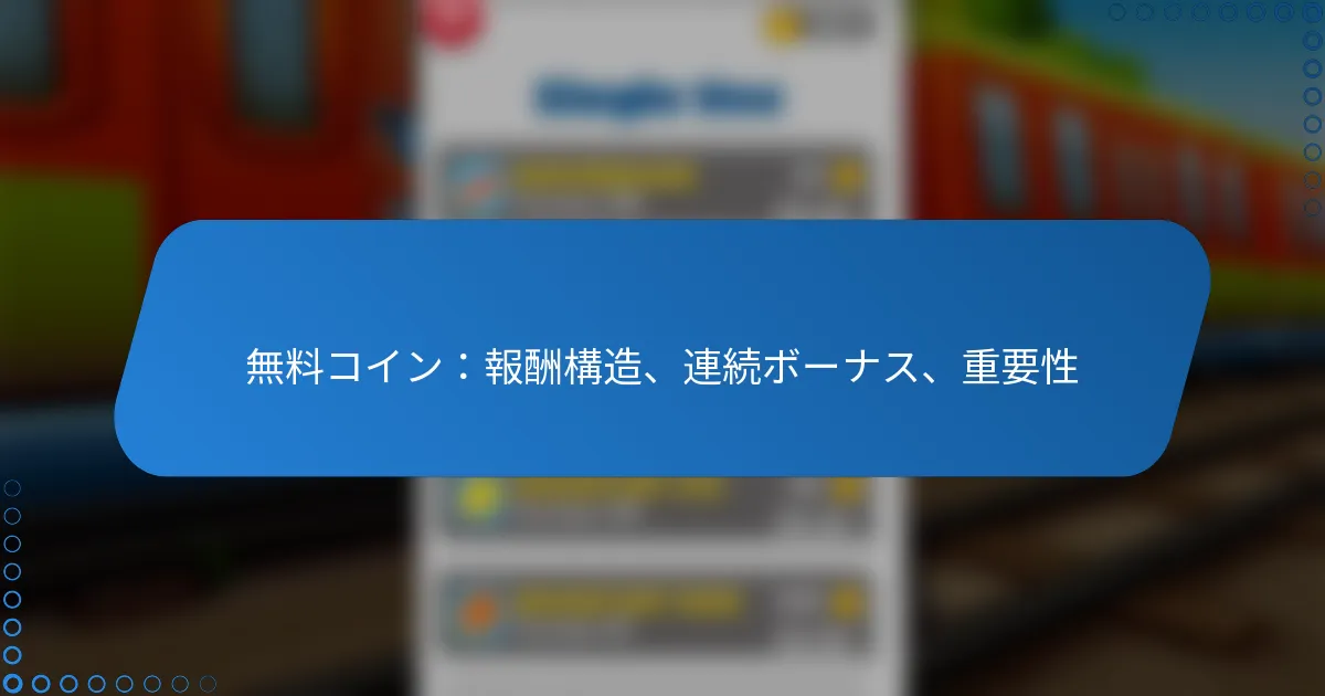 サブウェイサーファーズにおける無料コインの報酬構造は、プレイヤーがゲームに参加することを促進するために、ゲーム内購入に使用できるコインを獲得するためのさまざまな方法を提供しています。無料コインは、ゲームプレイを向上させ、新しい機能をアンロックするための重要なリソースです。