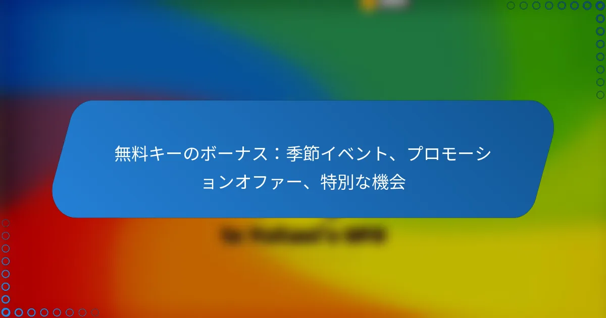 無料キーを提供するプロモーションオファーには、通常、季節イベント、特別な機会、さまざまなプロモーションキャンペーンが含まれます。これらのオファーは、追加費用なしで独占コンテンツや機能へのアクセスを可能にすることで、ユーザー体験を向上させることができます。